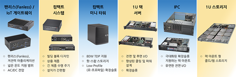 <▲ 폼 팩터 별로 분류한 슈퍼마이크로 IoT/임베디드 하드웨어>