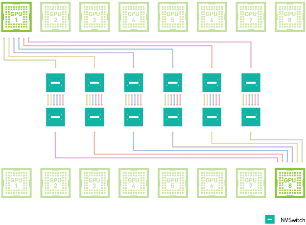 ▲ NVSwitch™ 토폴로지 다이어그램은 간단하게 2개의