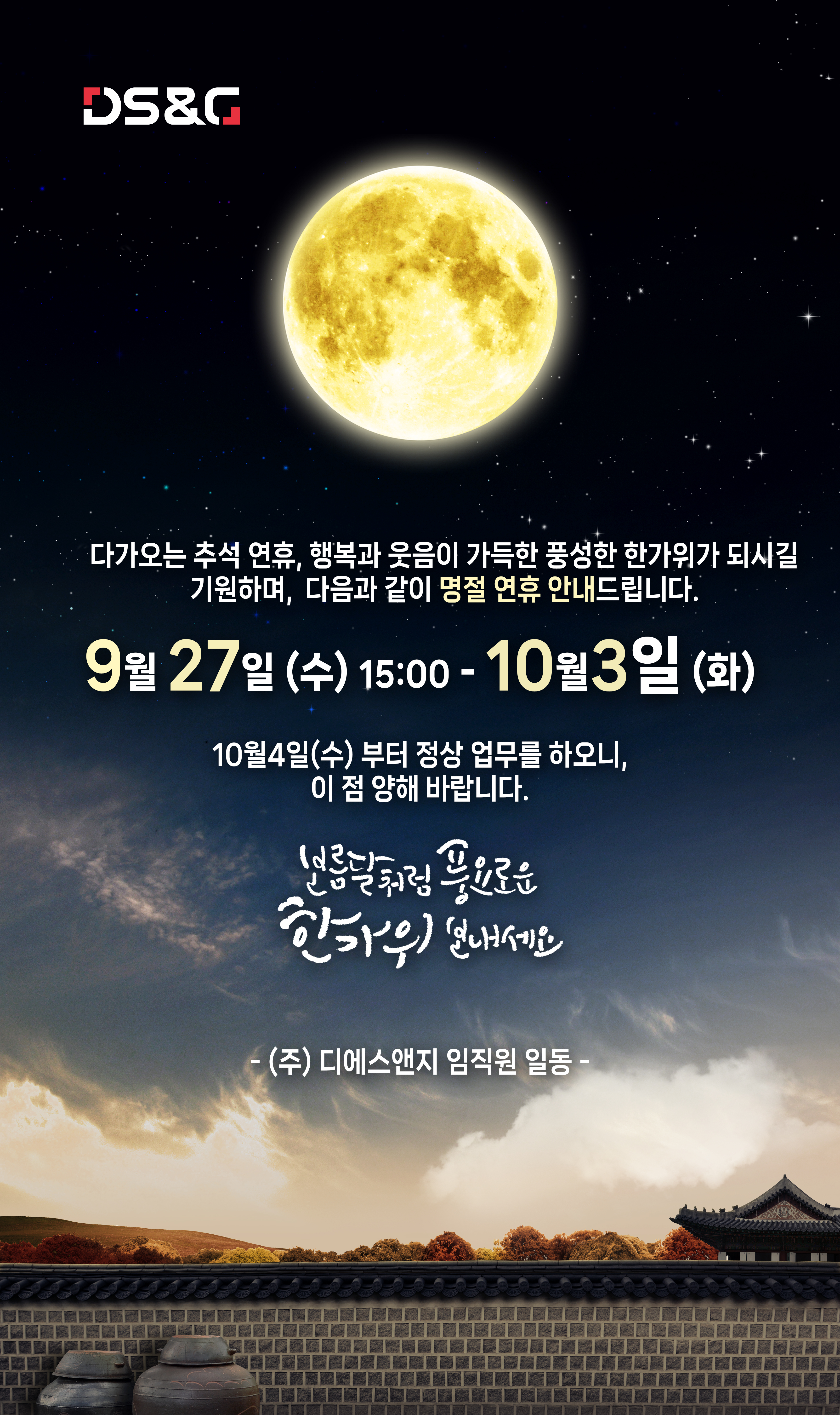 (주)디에스앤지시스템은 관련 법령 및 ㅎ쇠사 정책에 의해 내용의 추가, 삭제, 정정이 있을 시 시행 7일 전부터 변경사항을 홈페이지를 통하여 고지할 것입니다.