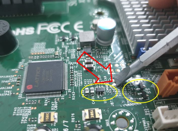 여기서 주의할 점은 주변 칩셋을 건들지 않게 정확히 CMOS 초기화 부분을 접지 시켜야 합니다.