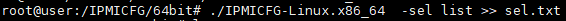 ./IPMICFG/LINUX/64BIT/IPMICFG~ –sel list >> 파일명.txt
