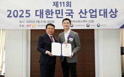 서영민 디에스앤지 전무(사진 오른쪽)가 21일 오후 서울 중구 한국프레스센터에서 열린 머니투데이 주최의 '2025 제11회 대한민국 산업대상' 시상식에서 2년 연속상으로 'AI 인프라 서비스' 부문 'K-ICT대상'을 수상하고 이종섭 동국대학교 교수와 기념사진을 촬영 중이다.1999년 설립된 디에스앤지(DS&G)는 GPU(그래픽처리장치) 클러스터와 고성능 컴퓨팅 솔루션 등의 분야에 주력하는 AI 인프라 전문기업이다. 클라우드와 스토리지 구축으로 다양한 분야의 디지털 전환을 돕고 있다. 디에스앤지 측은 "다양한 산업 분야에서 고객 중심 서비스를 제공 중"이라며 "지속 가능한 경영으로 신뢰받는 파트너로 성장하고 있다"고 말했다.