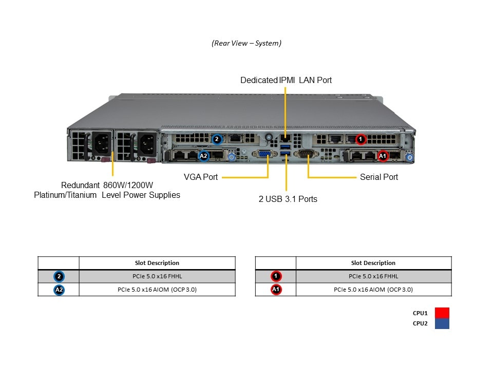 | *Power Supply | PWS-860P-1R2 | 2 | 1U 860W, Redundant power supply, 54.5mm width, Platinum with |