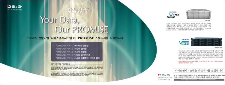 (주)디에스앤지시스템은 2011년 글로벌 스토리지 전문 기업 PROMISE의 우수한 스토리지를 국내 시장에 선보이기 시작했습니다.
