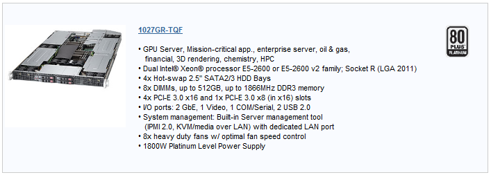* 4x NVIDIA(R) Tesla(R) K20X GPU 액셀러레이터