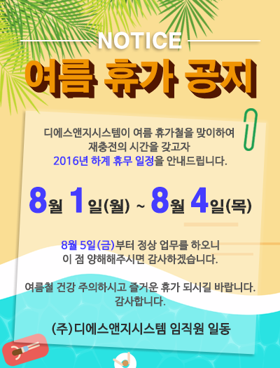 디에스앤지시스템 하계 휴무 공지 (~8/4)