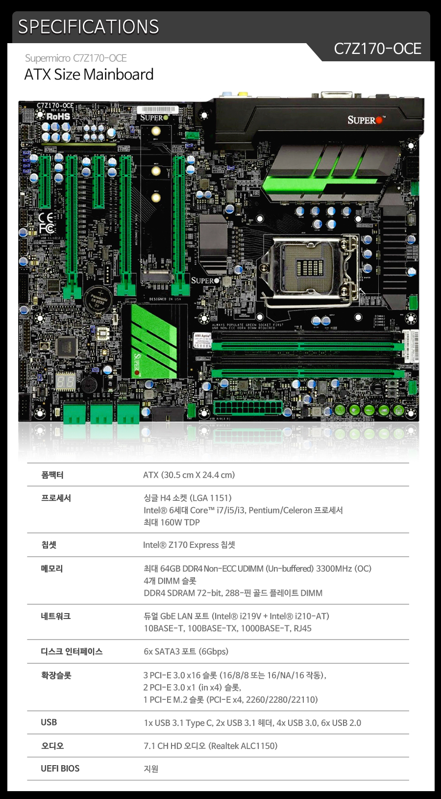 <오버클럭 전용 메인보드 C7Z170-OCE SPECIFICATION>