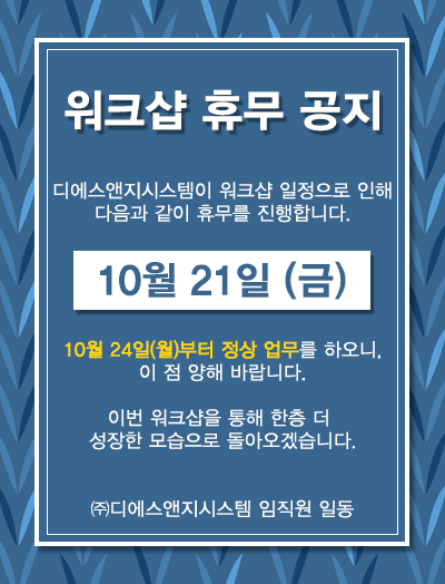 디에스앤지시스템 워크샵 휴무 공지 (10/21)