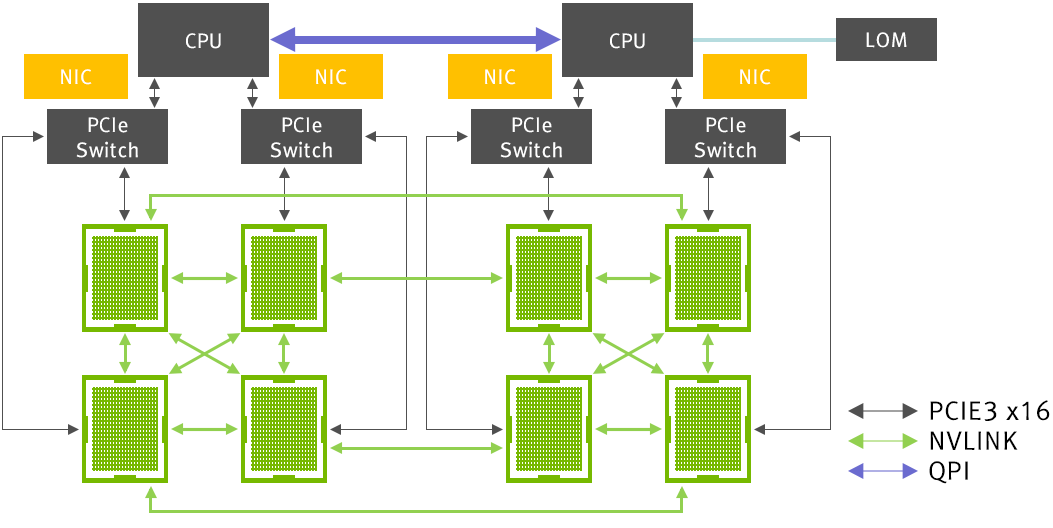 Access 타입 PASCAL GPU의 가장 큰 장점 중 하나는 바로 NVLink 기술이며, 이를 통해 GPU 간 직접 커뮤니케이션이 가능합니다. 이는 PCI-E 인터페이스에 비해 훨씬 더 빠른 속도를 제공하며 양방향 기준으로 최대 80GB/s의 전송속도를 자랑합니다.