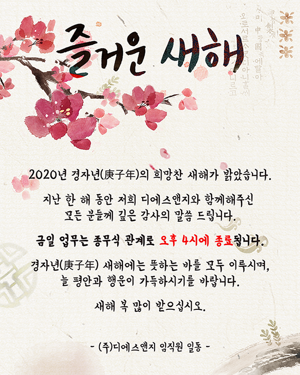 | 이전 글 | 2020 디에스앤지 설 연휴 공지 |