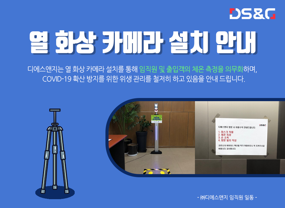 디에스앤지는 열 화상 카메라 설치를 통해 임직원 및 출입객의 체온 측정을 의무화하며,