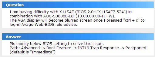 X11S 계열보드에 RAID controller 장착시 WebBIOS 진입 안되는 증상에 대한 해결방법 입니다.