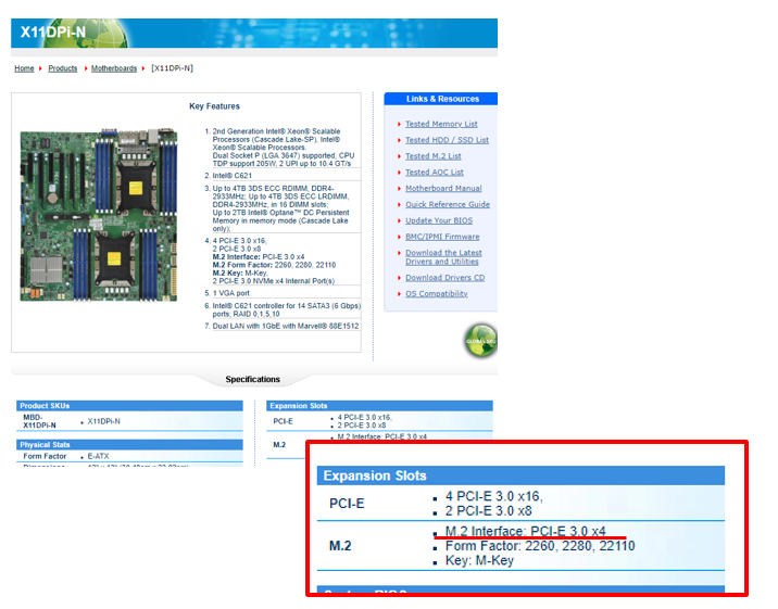 그러므로 슈퍼마이크로 메인보드를 사용하실 때, 메인보드가 지원하는 M.2 인터페이스를 확인하시어 사용하시길 바랍니다.