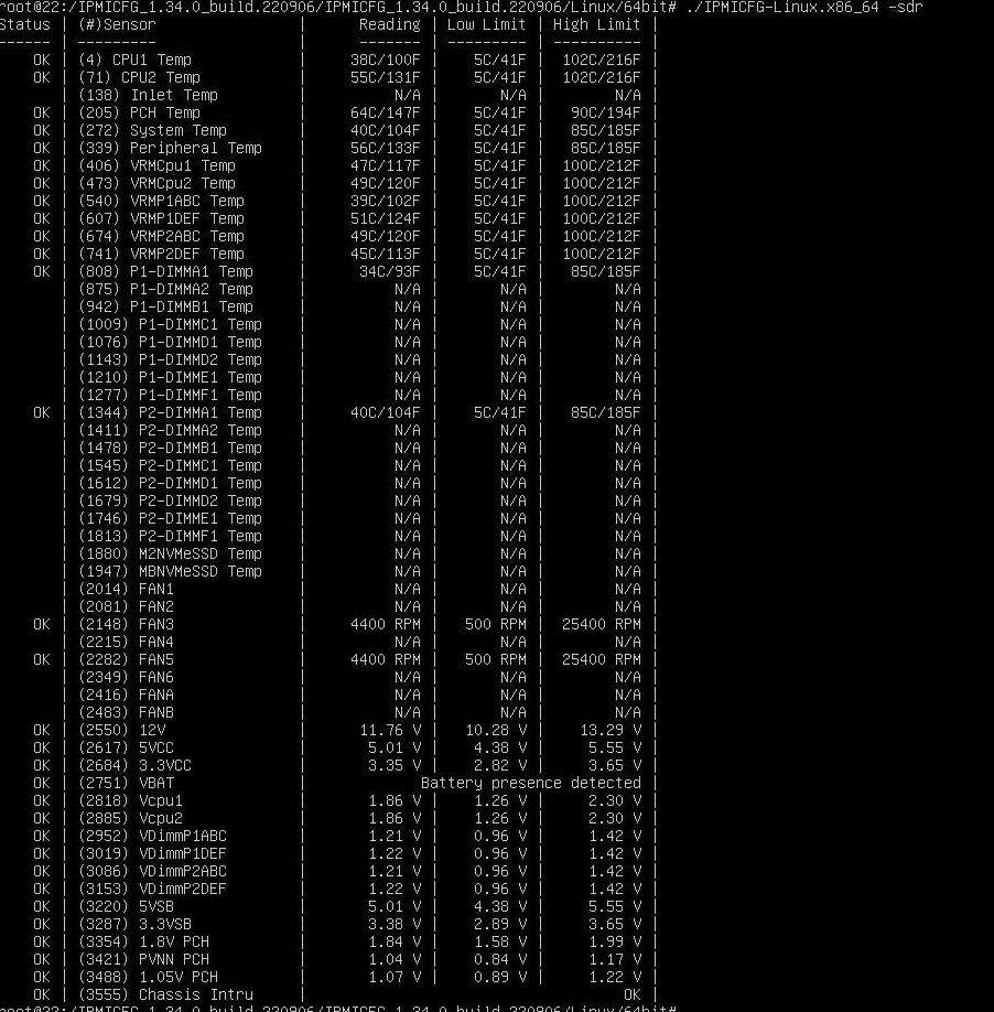 ./IPMICFG -sdr ////센서값 확인을 통해서 불량증상확인.