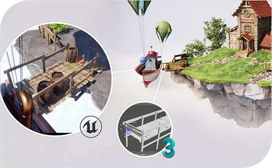 Omniverse는 3D 크리에이티브 애플리케이션을 원활하게 연결하고 향상하는 중앙 허브 역할을 하면서 에셋, 라이브러리, 도구를 통합하여 끊김 없는 워크플로우를 지원하므로 아티스트는 매우 자유롭게 작품을 제작할 수 있습니다.