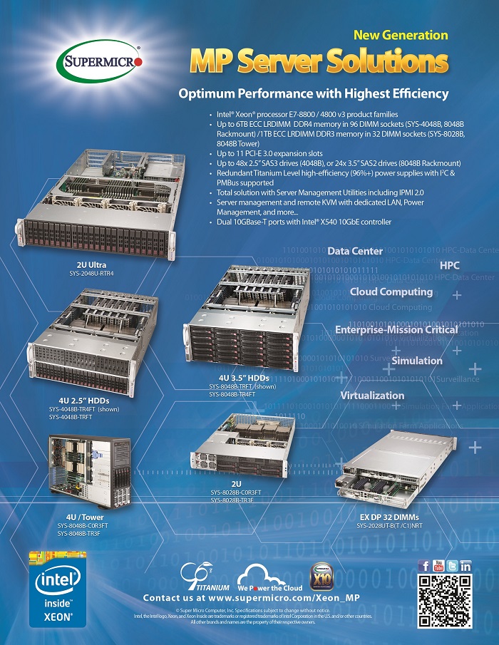 기업에서 사용하는 데이터 집중 애플리케이션에 최적화했다. 두 제품 모두 인텔 프로세서 중 최고 사양을 자랑하는 E7 8800 v3 시리즈의 18 코어 CPU를 지원한다.