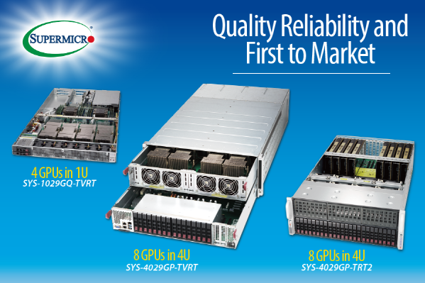 특히 1029GQ-TVRT와 4029GP-TVRT는 모두 NVLink 기반의 최신 NVIDIA 볼타 GPU를 장착하여 최대 300GB/s 대역폭의 NVLink로 GPU 간 커뮤니케이션이 가능하다. GPU 메모리 간 직접 통신이 가능한 GPUDirect™ RDMA 기술을 지원한다. 해당 시스템들은 AI 개발을 비롯한 빅데이터 분석, BI(비즈니스 인텔리전스) 등 고성능 컴퓨팅에 최적화됐다.