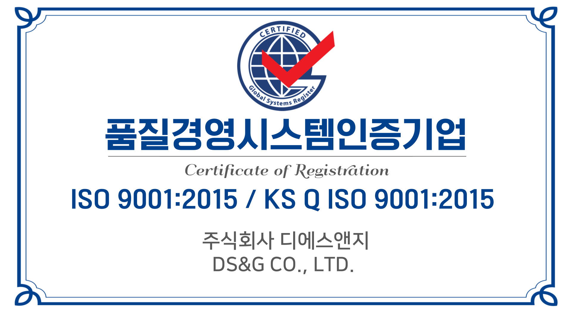 디에스앤지, 국제표준 품질경영시스템 'ISO 9001' 인증 획득