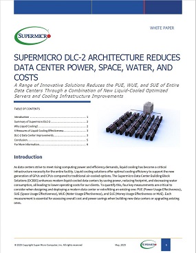 [슈퍼마이크로/ 백서] SUPERMICRO DLC-2 ARCHITECTURE REDUCES DATA CENTER POWER, SPACE, WATER, AND COSTS