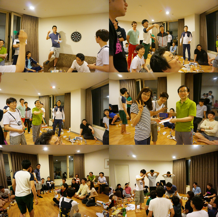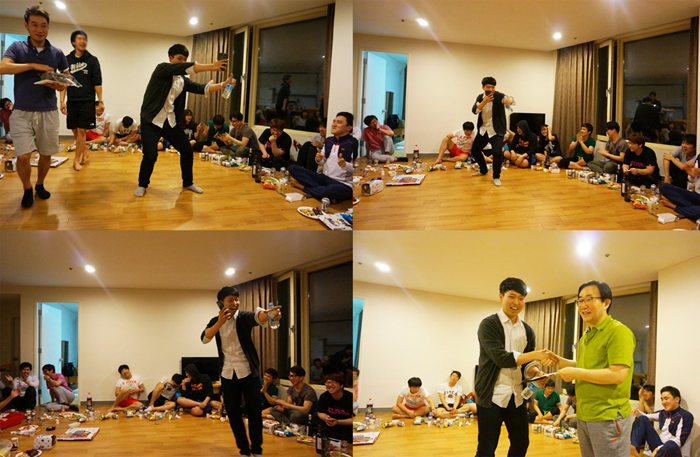 저녁식사를 마친 후 숙소에 돌아와 전 직원이 모여 앉아 레크레이션 시간을 가졌습니다! 사장님과 함께 게임도 하고, 상품도 받을 수 있었던 행복한 시간이였습니다 ^^ |