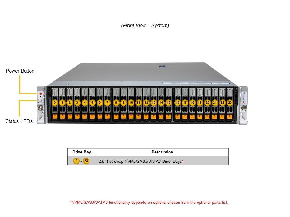 | Drive Tray(s) | MCP-220-00196-0B | 24 | Metallic black gen-3 hot-swap 2.5 NVMe tool-less tray |