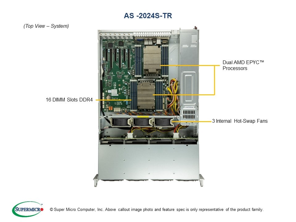 Key Features Virtualization Hyperconverge Storage Cloud Computing High End Enterprise Server Flexible Networking Options 1. Dual AMD EPYC™ 7001/7002* Series Processors (*AMD EPYC 7002 series drop-in support requires board revision 2.x) 2. 4TB Registered ECC DDR4 2666MHz SDRAM in 32 DIMMs (7001 Processors) 8TB Registered ECC DDR4 3200MHz SDRAM in 32 DIMMs (Board revision 2.x required + 7002 Processors) 3. Expansion slots: 1 PCI-E 3.0 x16 slot (FH, 10.5" L) 5 PCI-E 3.0 x8 slots (FH, 9.5" L) 1 PCI-E 3.0 x8 slot (LP) 1 PCI-E 3.0 x8 (internal proprietary LP slot) [ Details ] 4. Integrated IPMI 2.0 + KVM with dedicated LAN • Software Out of Band License key (SFT-OOB-LIC) included for OOB BIOS management 5. Quad Gigabit LAN ports via Intel i350AM4 6. 12 hot-swap 3.5" Drive Bays: 12 SATA3 by default or 8 SATA3 + 4 NVMe (optional supported) or 12 SAS3 (SAS Add-on card is optional) 7. 1600W Redundant Power Supplies Titanium Level (96%+) (Full redundancy based on configuration and application load) |